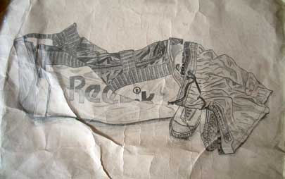 An early sketch – 1988/89. I used to carry this yellow Reebok bag. Also placed a pair of shorts and canvas shoes used for PT (Physical Training).
